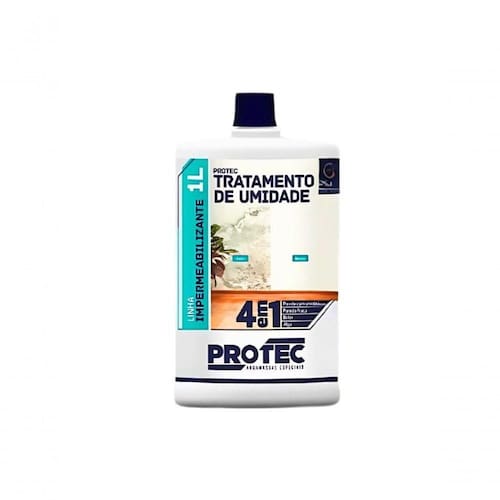 Tratamento De Umidade Protec 1 L Protege, previne e recupera paredes com umidade ascendente. Ideal para rodapés com presença de umidade. Compatível com qualquer pintura, argamassas ou revestimentos.Trata reboco fraco atribuindo mais resistência, atua melhorando a resistência contra umidade. Remove e protege contra formação de bolor e algas. Podendo ser utilizado tanto em áreas internas e externas.