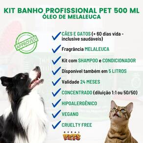Kit composto por shampoo e condicionador óleo de , contendo 500 ml cada, concentrados diluição até 1:1 - podem ser aplicados puros ou diluídos , linha profissional. indicados principalmente para cães e gatos com doenças de pele, alergias crônicas, dermatites, infecções fúngicas, peles sensíveis e facilmente irritáveis. Recomendados para pets com mais de 60 dias de vida, independente da raça, porte, cor, tamanho e tipo de pelagem. Importante: estes produtos também podem ser utilizados em pets saudáveis e sem doenças diagnosticadas veganos, isentos de sal, livres de crueldade animal e de parabenos válidos por 24 meses phs compatíveis com a pele dos pets aprovados por veterinários, portanto, ideais e sem contraindicações fabricados por empresa especializada e consolidada há mais de 20 anos no mercado recomendações de uso servem para todos os pets cães e gatos a partir dos 60 dias de vida, independente da raça, porte, cor, comprimento e tipo de pelagem frequência de uso: podem ser utilizados em todos os banhos do seu pet recomenda-se banhos a cada 15 dias para pelagens curtas e 30 dias médias e longas tempo de molho: recomenda-se que os produtos fiquem agindo de 3 a 5 minutos por aplicação podem ser reaplicados, se necessário enxágue: deve ser muito bem feito, principalmente do condicionador 2x mais , de modo que não fiquem quaisquer resíduos na pele e pelagem do pet deve-se evitar o contato direto com os olhos dos pets podem ser utilizados mesmo que a pele do animal esteja irritada não devem ser aplicados em pets com feridas graves e expostas a diluição deve ser realizada em quantidades que logo serão usadas, isto para que o produto não perca suas propriedades permanecendo diluído e armazenado por muito tempo importante para qualquer dúvida sobre este nosso kit shampoo e condicionador e seus benefícios para o seu pet, por favor, nos contate. Será um prazer atendê-la o loja oficial geral pets na geral pets você encontra uma vasta linha com produtos de altíssima qualidade para todos os cuidados que seu animal de estimação merece. Muito obrigado por sua visita e conte conosco sempre que precisar