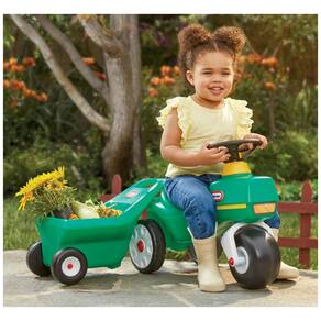 O carrinho fixável é fácil de encaixar, permitindo que as crianças transportem seus itens com facilidade, enquanto desenvolvem habilidades motoras importantes. O assento do trator é espaçoso e confortável, acomodando as crianças à medida que crescem.