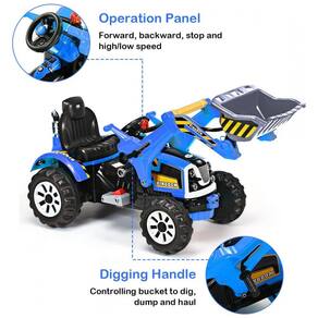Excavator Pretend Play A escavadeira Costzon foi projetada para imitar a escavadeira de construção de adultos na aparência, o que ajuda na coordenação das mãos e dos olhos das crianças e cria a destreza e o desenvolvimento das crianças. Arm se estende para uma peça realista e seus filhos vão gostar de emular ser um trabalhador da construção civil. Funções de avançar, retroceder, parar e duas velocidades adicionam mais diversão. Material resistente e durável O corpo dessas crianças bem feitas é feito de matéria prima e ferragens PP e as rodas são feitas de material PE, e é forte o suficiente para suportar uma leve colisão. A superfície impermeável, fácil de limpar e durável satisfará todos os pais. Carregadeira frontal flexível A escavadeira de retroescavadeira totalmente funcional pode facilmente colher grandes pilhas de sujeira, areia ou neve, equipadas com um forte carregador frontal de várias atividades conjuntas. Longa duração da bateria Possui uma porta de carregamento lateral externa e precisa carregar de 8 a 12 horas. Quando esta escavadeira está totalmente carregada, seus filhos podem tocá la continuamente por 1,5 horas, o que garante que seus filhos pequenos possam se divertir abundantemente. Condução segura Assento confortável com cinto de segurança, pneus de plástico com padrões rígidos e a função de parada fácil de usar proporcionará aos seus filhos adoráveis um ambiente de condução e confortável. Grande presente para aniversário e férias para meninos e meninas.