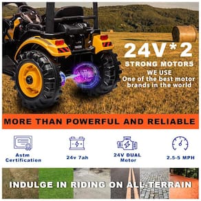 Projetado para crianças de 3 anos ou mais acionamento de motores duplos de 24V, que pode fornecer corrente estável em vários terrenos. Ao mesmo tempo, ele também vem com um carregador correspondente e luzes indicadoras de energia, o que é conveniente para os pais carregarem o carro a tempo. Capacidade máxima de peso de 65 lbs 29,5 kg. Este trator infantil é um presente perfeito para seus filhos no aniversário, Ação de Graças, Natal, Ano , Dia das Crianças, etc.