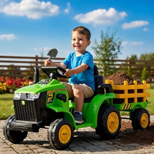 Equipado com uma bateria de 12V (2 motores de 6v), o trator alcança uma velocidade máxima de 3,5 km/h, permitindo que as crianças se divirtam com segurança. O controle remoto oferece aos pais a possibilidade de supervisionar a brincadeira, enquanto o pedal elétrico proporciona autonomia para os pequenos motoristas. Com capacidade para suportar até 30 kg, é perfeito para uma única criança.