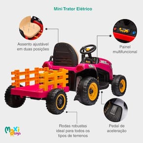 Indicado para crianças a partir de 3 anos, o Mini Trator Elétrico da Maxi Toys oferece interatividade, resistência e muita diversão, estimulando a imaginação, a coordenação motora e a independência dos pequenos.