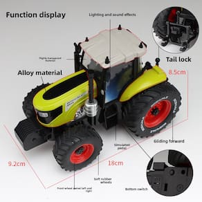 Material: liga de zinco, plástico, componentes eletrônicos Cor: verde Tamanho da embalagem: 18 x 10,2 x 9,5 cm Peso da embalagem: 0,7 kg Lista de embalagem: 1 x brinquedo de tratorDesign realista: este modelo de trator agrícola em escala 1:24 é feito com detalhes incríveis. A cor verde e os recursos realistas o tornam um ótimo complemento para qualquer coleção de veículos agrícolas. Perfeito para crianças e colecionadores. Características de som e luz: Equipado com luzes de trabalho e efeitos sonoros, este brinquedo de trator agrícola adiciona uma camada extra de diversão e realismo. Ele imita a experiência real de trabalhar com um trator, tornando-o ainda mais emocionante para brincar. Materiais duráveis e seguros: feito com uma combinação de liga de zinco, plástico e componentes eletrônicos, este brinquedo foi projetado para suportar horas de jogo. É seguro para crianças e pode suportar manuseio brusco durante a hora de brincar. Ideal para meninos e colecionadores: este trator agrícola não é apenas um brinquedo fantástico para crianças, mas também um ótimo item de colecionador. Seu design pesado e sua construção detalhada atraem meninos que amam veículos agrícolas e máquinas de construção. Presente perfeito e brinquedo educativo: este trator agrícola é um presente perfeito para meninos, despertando imaginação e criatividade. Ele ajuda a desenvolver habilidades motoras e a compreensão das operações agrícolas, ao mesmo tempo em que oferece diversão sem fim.