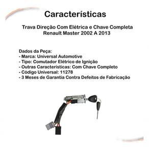 Trava de Direção para Coluna Modelo Master 02 a 13 Compatível com Renault 2002 a 2013 com Chave e Parte Elétrica