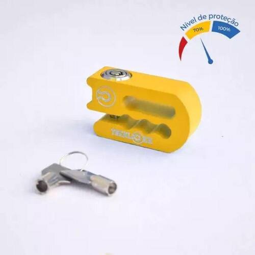 TRAVA DE DISCO ULTRALIGHT TECHLOCKTravas são comumente utilizadas em motos a fim de se evitar furtos, por se tratar de acessório de simples utilização sem anecessidade de adaptações. Fabricada em metal de alta resistência, esta trava de disco é utilizada diretamente no disco de freio,que impossibilita que a moto seja locomovida através do travamento da roda dianteira. A Trava de Disco Techlock é produzida com pintura de alta qualidade e acompanha chave reserva. DADOS TÉCNICOSUtilizar somente em motos com freio a discoPintura em Alta QualidadeNão Necessita AdaptaçãoAcompanha Chave ReservaMATERIAISDuraluminio, sistema de fechadura tubular,multiplas combinaçõesDimensões Aproximadas ALTURA 2,5cm LARGURA 4,5cm COMPRIMENTO 7,5cmITENS DA EMBALAGEM1 Trava de Disco 2 Chaves MODO DE USOEncaixe a trava de disco no freioPosicione de maneira que o pino atravesse o disco por completoAperte a fechadura para travar