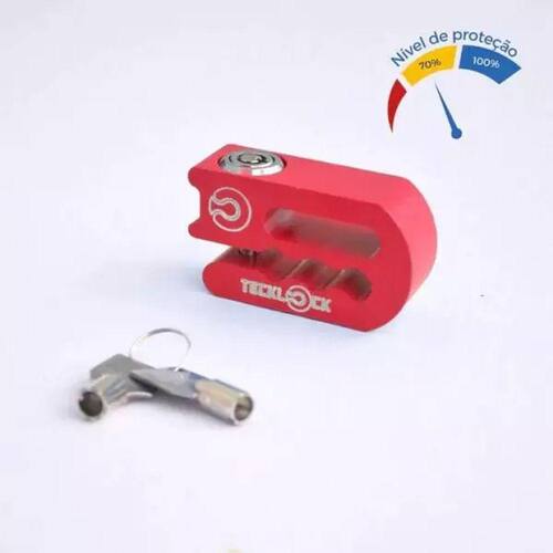 TRAVA DE DISCO ULTRALIGHT TECHLOCKTravas são comumente utilizadas em motos a fim de se evitar furtos, por se tratar de acessório de simples utilização sem anecessidade de adaptações. Fabricada em metal de alta resistência, esta trava de disco é utilizada diretamente no disco de freio,que impossibilita que a moto seja locomovida através do travamento da roda dianteira. A Trava de Disco Techlock é produzida com pintura de alta qualidade e acompanha chave reserva. DADOS TÉCNICOSUtilizar somente em motos com freio a discoPintura em Alta QualidadeNão Necessita AdaptaçãoAcompanha Chave ReservaMATERIAISDuraluminio, sistema de fechadura tubular,multiplas combinaçõesDimensões Aproximadas ALTURA 2,5cm LARGURA 4,5cm COMPRIMENTO 7,5cmITENS DA EMBALAGEM1 Trava de Disco 2 Chaves MODO DE USOEncaixe a trava de disco no freioPosicione de maneira que o pino atravesse o disco por completoAperte a fechadura para travar