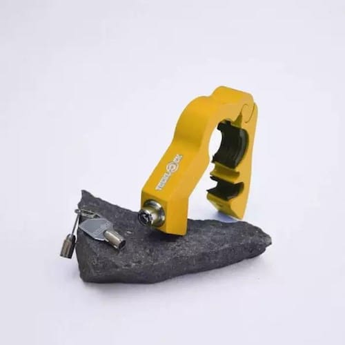 A Trava de manopla TeckLock foi desenvolvida com o propósito de bloquear o acelerador e manter a moto frenada, As travas são acompanhadas por quatro calços de regulagemque permitem o motociclista escolher qual se adapta melhor a sua manopla.Feita com alumínio naval com têmpera T6 e componentes em aço, seu acabamento é realizadoatravés de um banho eletrolítico aonde é inserido um filme óxido na superfície do alumíniopermitindo alta durabilidade no acabamento.