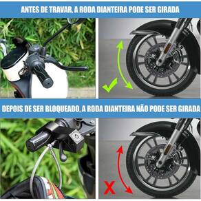 Este produto é uma trava anti roubo ajustável para guidão, adequada para uma variedade de veículos.