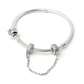 Trava de segurança com rosca fabricada em Prata 925 com detalhes de brilho. Não se engane com materiais folheados e banhados. acabamento e polimento manuais. Antes de adquirir a sua trava, identifique a espessura da sua pulseira, ou seja, o quanto a sua pulseira é grossa. Assim você saberá qual é o tamanho da trava tem que comprar para que ela entre sem problemas e não fique larga. Já que, caso a sua trava fique larga ela não cumprirá o seu papel que é proteger a sua coleção. Essa trava é de rosca e não o modelo de argola de silicone, ou seja, a sua pulseira deve conter o giro. Compatível com pulseiras de modelo europeu. Material: prata 925 e Zircônia. Cor: prata. Medida aproximada: 4,5mm de vão. Marca: Não Informado