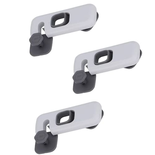 Sem necessidade de ferramentas. Instale facilmente a trava de armário à prova de bebê com fitas adesivas dupla face. Basta remover a capa do adesivo e colar a trava de segurança na superfície que você quiser.