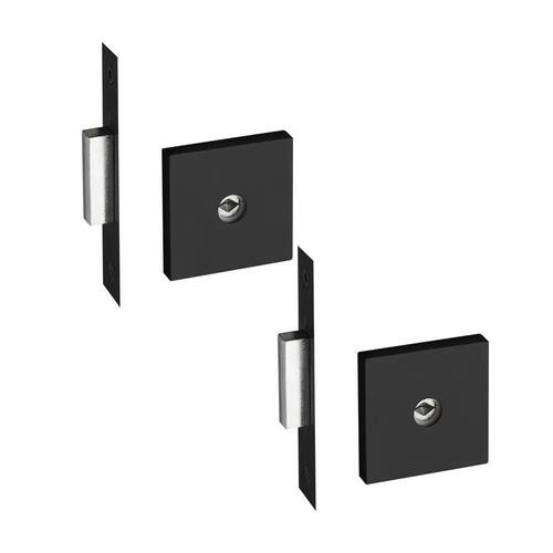 - Aplicação: Portas de Madeira de Giro Pivotante - Acabamento: Roseta Quadrada Zamak com Acabamento Preto Fosco - Testa e Contra Testa Inox com Acabamento Preto Fosco