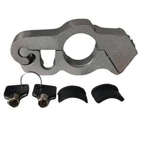 Este produto é uma trava anti roubo ajustável para guidão, adequada para uma variedade de veículos.