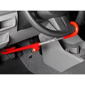 Antifurto tem aplicação universal de fácil manuseio, esta peça irá travar o volante junto ao pedal foi fabrica em aço e latão de alta durabilidade com um excelente revestimento na cor vermelha. E você ainda poderá contar com a regulagem de distância. Não fique de fora dessa