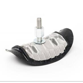 Fabricado em alumínio e borracha, com garras laterais para ajuste perfeito no pneu, alta resistência à tração, não permitindo que o parafuso se solte, não oferecendo nenhum risco de dano ao pneu e a câmera.