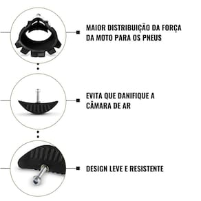 A trava de pneu Anker trabalha em harmonia com a engenharia da sua moto para evitar que o aro rode solto da roda, o que faz toda a diferença quando você está no desafiando seus limites e evita que o aro danifique a câmara de ar de sua moto.