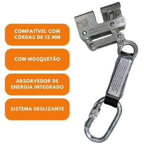 O trava quedas é um dispositivo de segurança essencial para trabalhos em altura, desenvolvido para garantir a retenção eficaz em caso de queda. Fabricado em aço carbono de alta resistência, este modelo deslizante é indicado para uso em cordas de 12 mm, sendo instalado com ancoragem superior, com a extremidade inferior livre ou com pequeno lastro para manter a corda esticada.