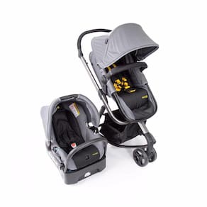 Conjunto travel system completo, carrinho de alumínio com 3 rodas, assento reversível que se transforma em moisés e bebê conforto com base para veículo.