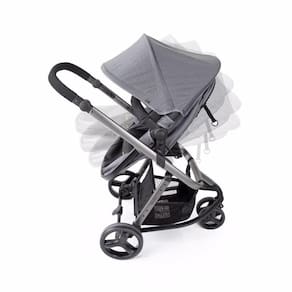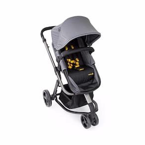 Travel System Mobi Safety 1st, completo, moderno e confortável. O carrinho tem estrutura de alumínio, assento reversível que se transforma em moisés, reclinável em 4 posições, encosto ajustável em múltiplas posições, manopla ajustável em altura, 3 rodas largas para mais conforto: roda dianteira dupla e rodas traseiras grandes, suspensão, freio centralizado, giro 360 com trava de movimento na roda dianteira, amplo cesto de compras com capacidade de até 5kg, cinto de segurança de 5 pontos com protetores acolchoados, ajustáveis em altura e largura, capota retrátil, removível, com proteção solar UV50+ e alça para brinquedo.