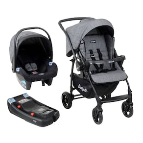 Instalação prática do bebê conforto no veículo ou no carrinho, com foco em fluidez nos deslocamentos.