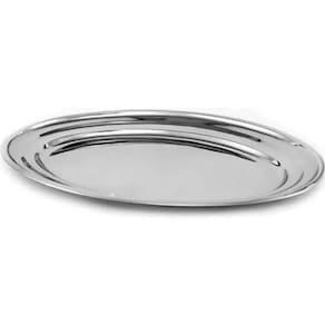 Travessa de Inox Grande Rasa 36,5cm Baixela Oval para Servir Saladas Carnes Porções Hercules.