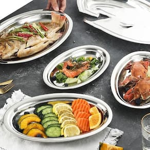 Travessa de Inox Grande Rasa 36,5cm Baixela Oval para Servir Saladas Carnes Porções Hercules.