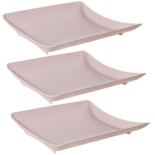 Travessa rasa quadrada de plástico com pés para servir porções, petiscos e antepastos, com decoração predominantemente branca com leves traços/ranhuras pretas por toda a peça, que traz uma aparência marmorizada super requintada à travessa.