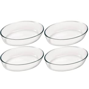 Kit 4 Assadeiras Travessas Formas Médias de Vidro Temperado Oval 2,4 L Marinex