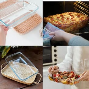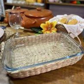 Travessa e Assadeira Refratárias 34,5x20x6cm com Suporte de Fibra Natural Wolff