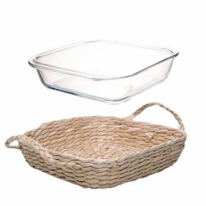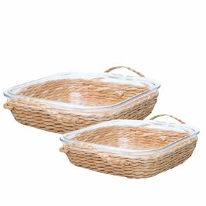 Travessa e Assadeira Refratárias 2un com Suporte de Fibra Natural Wolff