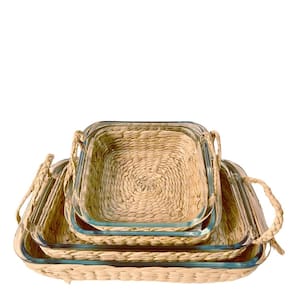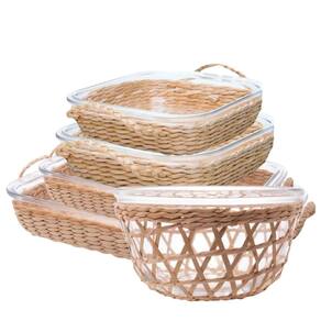Travessa e Assadeira Refratárias 5un Vidro com Suporte de Rattan Wolff