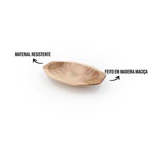 Travessa fruteira gamela oval madeira artesanal churrasco p Medida aproximada:Comprimento: 25-28cmLargura: 14,5-16,5cmProfundidade: 4,5cmMaterial: madeira maciça -peça linda e única, ideal para usar como saladeira, petisqueiraOu fruteira;-ótima qualidade e excelente acabamento;-resistente e muito útil. E no desenho natural da madeira. Quem somos Marca: Dupétriz