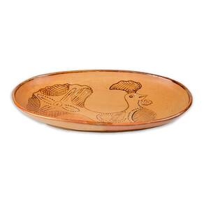 Travessa Oval De Barro Desenho Galinha Artesanato 38cm