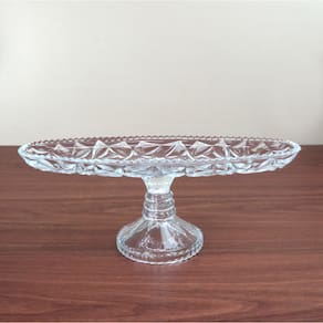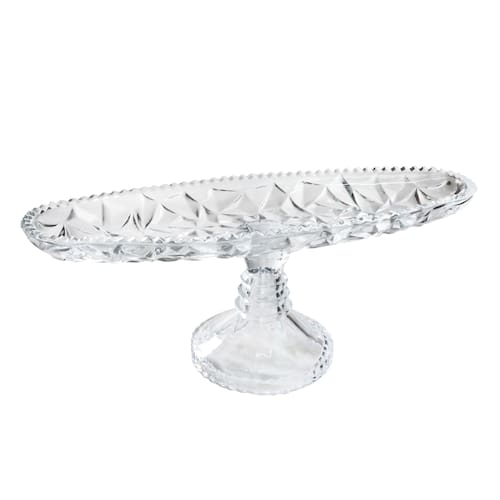 TRAVESSA OVAl DE VIDRO COM PÉ 10,5X11X31CM - GA10037