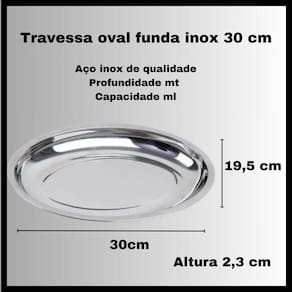 Travessa Oval Inox Funda 30 Cm Alta Qualidade Porção Arroz Feijão Salada