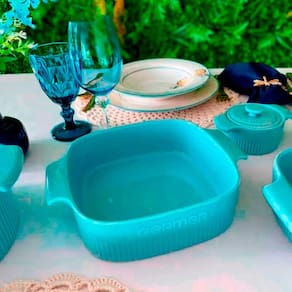 Travessa Quadrada de Porcelana 21x21cm Azul Vintage GermerPorcelanas refratárias eficientes para assar e que vão direto para mesa sem perder o charme e a personalidade. São diversas opções de tamanhos que atendem as necessidades de preparar, assar e servir os mais variados pratos. Escolha a cor que mais combina com você e coloque em prática aquela receita especial. Lembramos que o produto não é resistente a chama direta apenas ao forno.Medidas Comprimento 21 cm | Largura 21 cm | Altura 6,5 cm | Capacidade 3 litros | Peso 6.384 kgOrientaçõesPara conservar utensílios de porcelana é importante saber como limpá-los. Uma ótima maneira de fazer isso é respeitando algumas regras. Não use lã de aço, use somente uma esponja macia. Use um detergente suave e neutro no momento da lavagem. Não usar nenhum produto químico pesado para a limpeza deste produto. Cuidado com riscos e manchas. É comum o aparecimento de manchas e riscos em materiais de porcelana, principalmente quando os utensílios são usados com muita frequência. O que poucos sabem é que é possível retirá-los sem estragar os utensílios. Para isso você pode apostar no uso de uma esponja macia e bicarbonato de sódio. Deste modo, seu utensílio de porcelana estará perfeito para usá-lo novamente.