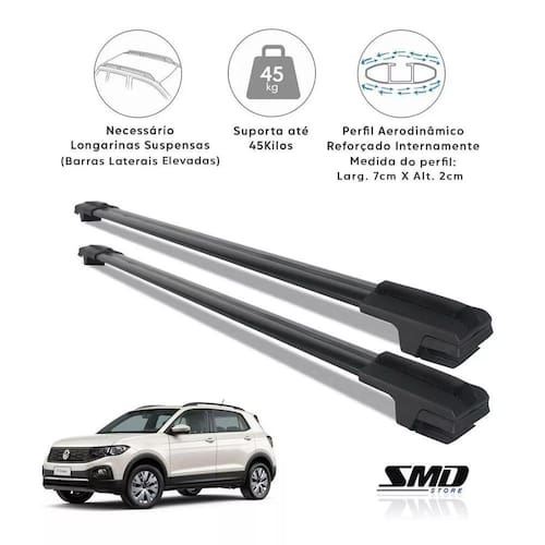 Travessa Rack De Teto Larga Preto Vw T-Cross 2016 Em Diante Preto Especifico Par de Travessas De Teto Rack Larga Alumínio Preto- Modelo Travessa de 7cm larg x 2cm alturaAplicação:Montadora: VolkswagenModelo: T-CrossCor Disponível: PretoEspecificação Técnica: Fabricada em Alumínio Resistente Pintura Eletrostática na Cor Preto Parafusos em Aço Inox Borracha central para apoio de cargas Modelo com 7 cm de Largura e 2 cm de Espessura Não é Necessário Fazer Adaptações no Comprimento a peça é feita de acordo com o veículo Capacidade Máxima de 45 kgs DistribuídosConteúdo da Embalagem: 2 TravessasInstalação:Importante:Valor do ParRecomenda-se que a instalação seja feita por profissionais capacitados ou por pessoas com conhecimento sobre todos os aspectos que a envolvem.Não nos responsabilizamos por instalação mau realizada.Atenção: As compras realizadas em nome de Pessoa Jurídica estão sujeitas à cobrança de ICMS, conforme Protocolo ICMS 41, de 4 de Abril de 2008. Caso você tenha dúvidas sobre o percentual a ser aplicado, consulte a Cláusula Segunda, 1 do referido Protocolo.Nosso horário de atendimento é de segunda a sexta das 9 as 17 horas exceto feriados .Boa Compra...