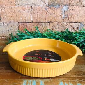 Travessa Redonda Em Porcelana Assar E Servir 25x5cm Germer Amarelo -
