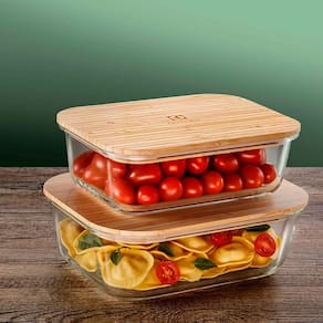 A tampa de bambu, além de charmosa, possui propriedades bactericidas, prevenindo o aparecimento de fungos e bactérias. O material também é sustentável e biodegradável. Fabricadas em vidro borossilicato, as travessas são resistentes a altas temperaturas, livres de BPA e podem ser utilizadas em: Fornos a gás e elétricos Micro-ondas, Lava-louças e Freezer. Aproveite a praticidade da vedação perfeita e a versatilidade do uso em diferentes temperaturas.
