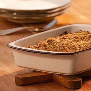 A Travessa Refratária Tango possui bordas afinadas e alças de segurança que ajudam no manuseio seguro, especialmente quando a peça está quente. Produzida em cerâmica refratária, a travessa é indicada para uso no forno até 280°C, sempre apoiada nas grades internas. Na opção pequena, a peça tem 5,5 cm de altura e capacidade para 1,4 L.