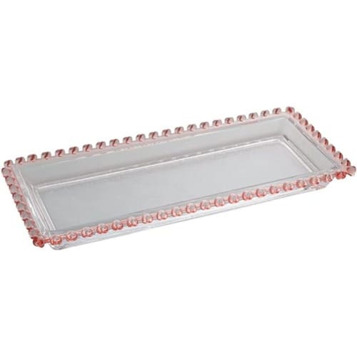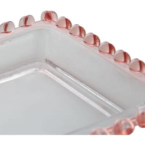 Travessa Retangular de Cristal Coração Borda Rosa 30cm x 13cm x 3cm - Lyor