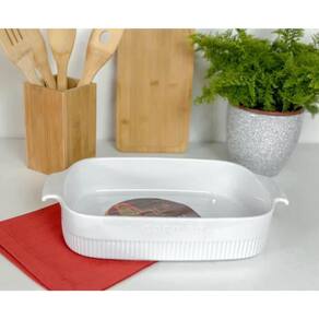 Travessa retangular em porcelana branca Assar e Servir Germer é um utensílio elegante e funcional, ideal para assar e servir alimentos. Com dimensões de 30x21x6,5cm é resistente e durável, com acabamento esmaltado em branco. Adequada para uso em forno, micro-ondas, geladeira e freezer, é fácil de limpar e pode ser lavada na máquina de lavar louça. Seu design simples e elegante, com bordas levemente elevadas, combina com qualquer decoração de mesa e é perfeita para diversas ocasiões. A marca Germer é conhecida pela qualidade e durabilidade de seus produtos.