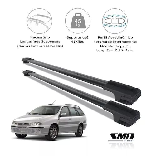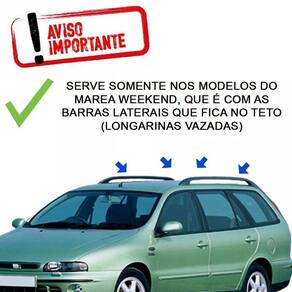 Travessa Teto Aluminio Preto Fiat Marea Weekend 1996 A 2003 Preto Especifico Par de travessas de teto rack larga alumínio preto - modelo travessa de 7cm larg x 2cm alturaAtençãoServe apenas nos modelos com barras laterais como apresenta na foto 2 do anúncioAplicação: fiatModelo: marea weekendCor disponível: PretoEspecificação técnica: Fabricada em alumínio resistente Pintura eletrostática na cor preto Parafusos em aço inox Borracha central para apoio de cargas Modelo com 7 cm de largura e 2 cm de espessura Não é necessário fazer adaptações no comprimento a peça é feita de acordo com o veículo Capacidade máxima de 45 kgs distribuídosConteúdo da embalagem: 2 travessasInstalação:Importante:Valor do parRecomenda-se que a instalação seja feita por profissionais capacitados ou por pessoas com conhecimento sobre todos os aspectos que a envolvem.Não nos responsabilizamos por instalação mau realizada.Atenção: as compras realizadas em nome de pessoa jurídica estão sujeitas à cobrança de icms, conforme protocolo icms 41, de 4 de abril de 2008. Caso você tenha dúvidas sobre o percentual a ser aplicado, consulte a cláusula segunda, 1 do referido protocolo.Nosso horário de atendimento é de segunda a sexta das 9 as 17 horas exceto feriados .Boa compra...