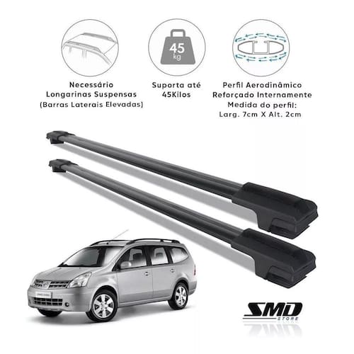 Travessa Teto Preto Grand Livina No Friso 2009 Em Diante Preto Especifico Par de travessas de teto rack larga alumínio preto - modelo travessa de 7cm larg x 2cm altura