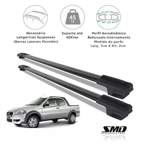 Fabricada em Alumínio Resistente Pintura Eletrostática na Cor Preto Parafusos em Aço Inox Borracha central para apoio de cargas Modelo com 7 cm de Largura e 2 cm de Espessura Não é Necessário Fazer Adaptações no Comprimento a peça é feita de acordo com o veículo Capacidade Máxima de 45 kgs Distribuídos