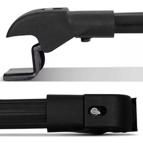Fabricado em alumínio com pintura eletrostática preta e ponteiras em nylon reforçado. Super resistente, modelo esportivo com design arrojado. Ideal para transporte de cargas ou para embelezar o veículo. Suporta até 45kg de carga distribuída. Instalação nas longarinas, sem necessidade de furar o veículo.Material