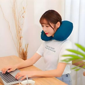 - Relaxamento em casaViaje com conforto absoluto com o Travesseiro Almofada de Pescoço Inflável e Portátil Verde! Design ergonômico em U, infla rapidamente e se ajusta ao seu pescoço, aliviando a tensão muscular em viagens longas ou no escritório. Compacto e leve, ideal para levar na mochila ou mala.