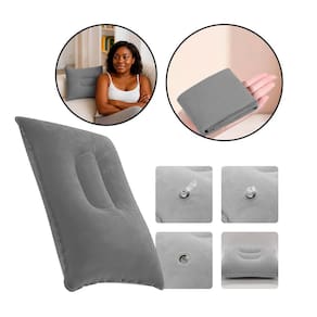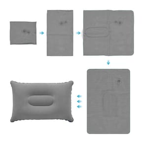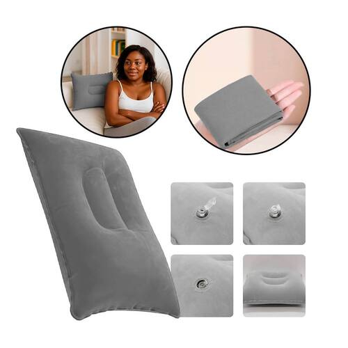 Travesseiro Almofada Inflável Aveludado PVC Viangens camping - Cinza