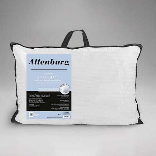 Conforto e requinte em um único travesseiro. O revestimento em cetim 250 fios, 100% algodão, com toque de seda, oferece o máximo conforto para uma noite incrível. O acabamento lateral do travesseiro é especial, como uma lombada que, juntamente com os 800g de fibra siliconizada do recheio, garantem a altura ideal para quem dorme de lado.