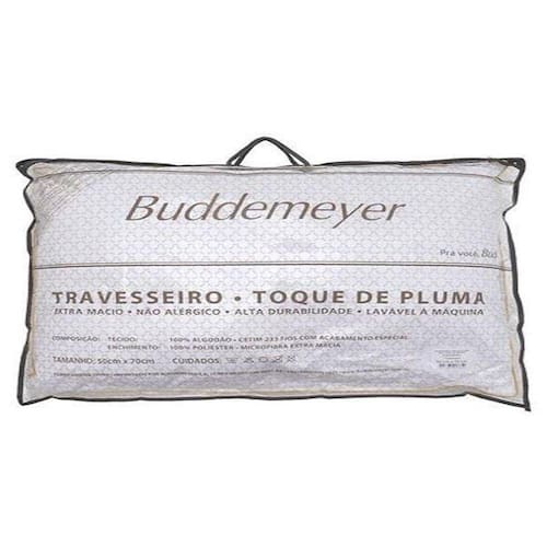 Travesseiro Buddemeyer Toque de Pluma branco. Confeccionado em algodão 233 fios de toque macio e aconchegante. Traz acabamento especial antialérgico, além de alta durabilidade. Ideal para uma noite de sono agradável. Informações Técnicas: Marca: Buddemeyer Modelo: Toque de Pluma Composição: 100% Algodão Enchimento: 100% Poliéster Medida: 50x70cm Cor: Branco